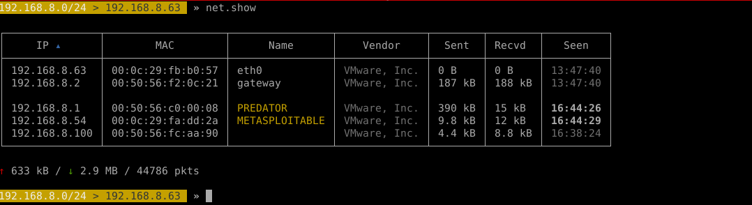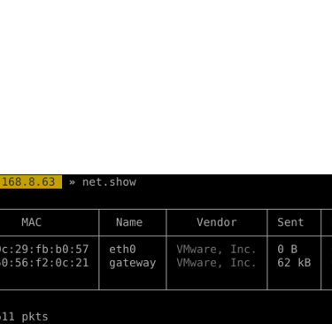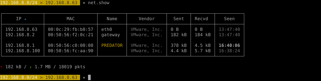 Em seguida, digite o comando net.show para exibir os hosts que ele identificou na rede.