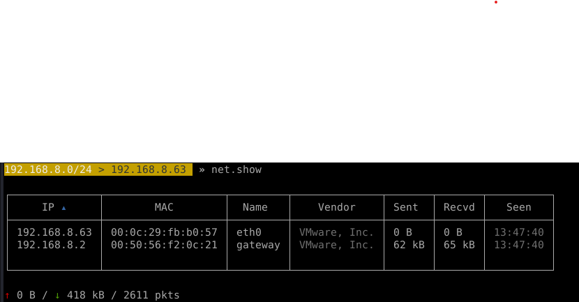 Na tela inicial do bettercap, aparece os hosts ativos que ele já identificou.